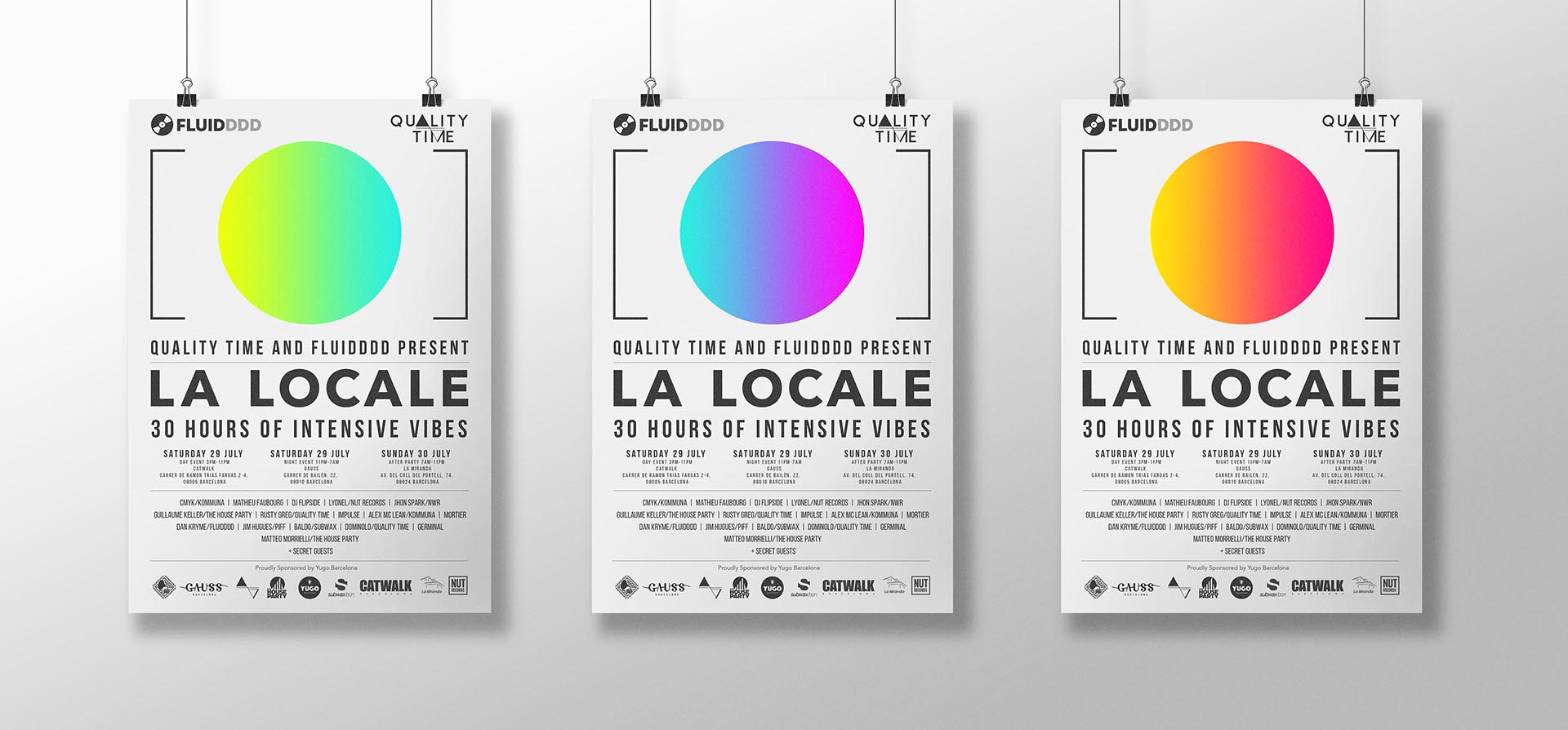 La Locale is an electronic music collective which stands for constant sound revolt and organise electronic music events around the city of Barcelona. We were in charge of creating some of their advertisements for next events during the summer season.